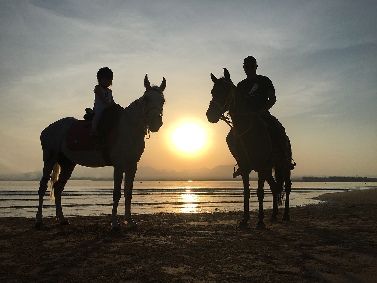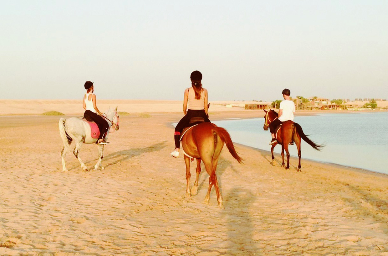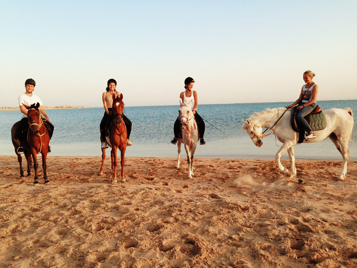 Strecke : Wir schwimmen auf dem Pferderücken (ohne Sattel, mit Badesachen)  im Roten Meer. Fotos und Videos werden zur Erinnerung aufgenommen. Eine ganz besondere Erfahrung!